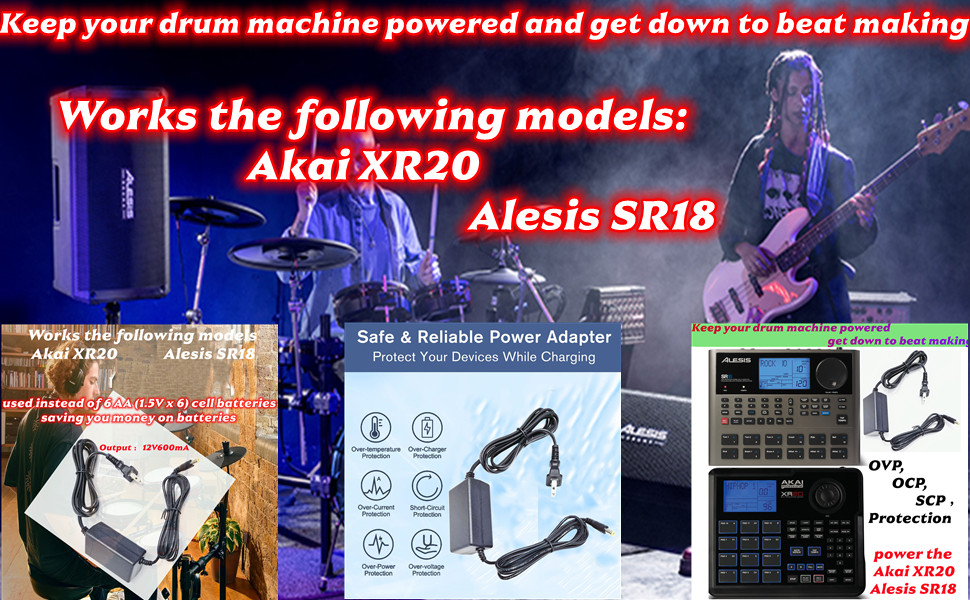 COMPATIBILITY: Specifically designed to work with Compatible with Alesis SR18 Drum Machine, providing reliable power supply for optimal performance..power adapter for akai xr20 power adapter for alesis sr-18
