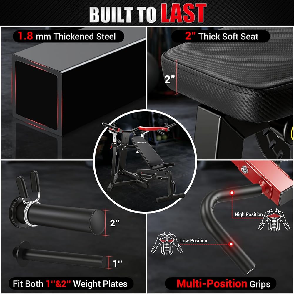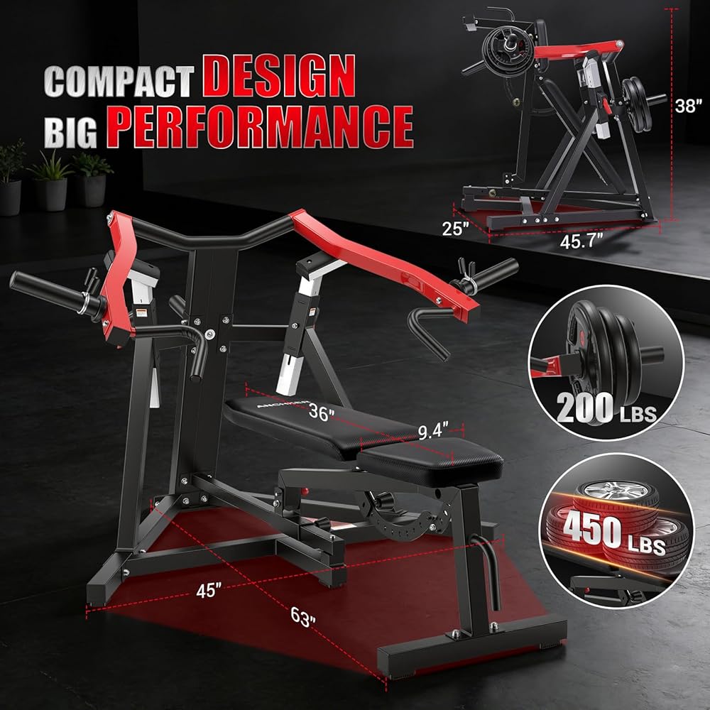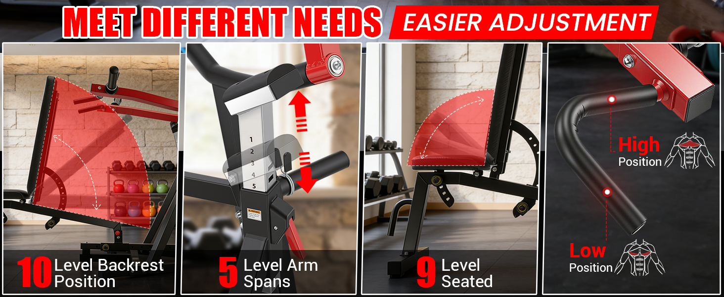 • 【PROFESSIONAL ADJUSTABILITY FOR TARGETED MUSCLE GROWTH 】Customize every workout with 10-position adjustable backrest (flat, incline, decline), 9-level seat height adjustment, and 5-position handle settings. Target upper, mid, and lower pectorals, shoulders, and triceps for balanced muscle development. This incline chest press machine accommodates all body types and fitness levels, ensuring perfect form and maximum muscle engagement for optimal results