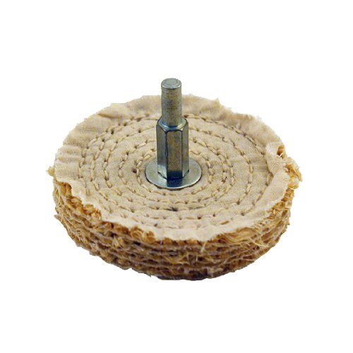 3" Sisal Buffing Wheels are made up of 11 plys (5/8" thick) of stiff sisal fibers, closely stitched for an aggressive cutting action. Sisal buffs are generally used on hard metals like stainless steel and iron to remove scratches up to 400 grit. For best results the Sisal wheels should be used with Black Emery Polishing Compound. Mounted Sisal buffing wheels are for use with any standard electric or battery operated drill that takes a 1/4" shank. All Buffing Wheels must be used with polishing compound.