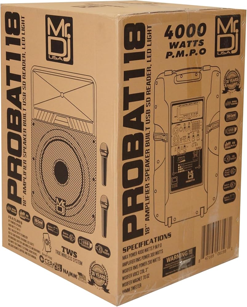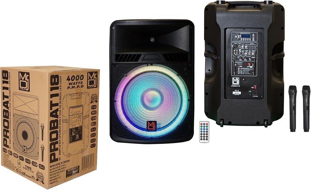 - MR DJ USA 18" PA DJ 4000 Watts Max Power Active Speaker Built-in Battery/Bluetooth/Amplifier/SD/USB/FM Radio