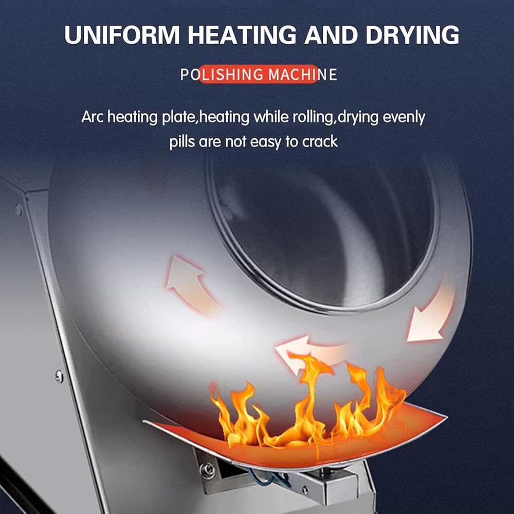 Small medicine pill polishing machine, fully automatic Chinese medicine particle coating machine, commercial food processing sugar coating machine. The integrated drying and polishing machine can meet your different needs, such as tablet coloring, candy drying and polishing, tablet coating, food seasoning, candy coating, etc.