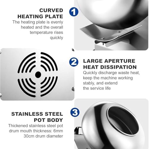 Exquisite Craftsmanship Commercial Chocolate Panning Machine is made of stainless steel, beautiful and practical,300MM pot diameters can accommodate more materials at one time.With built-in heating and drying function, multi-hole heat dissipation to ensure safetys.