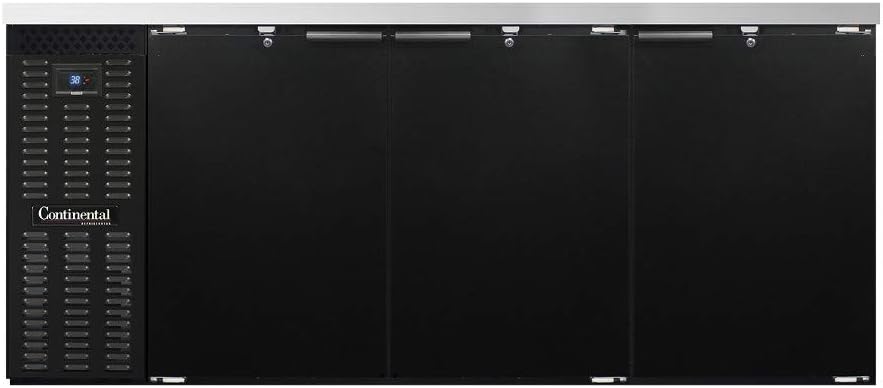 Continental Refrigerator BBC79 Three Section Refrigerated Back Bar Cooler, 79" W x 34-3/4"H, Black Exterior