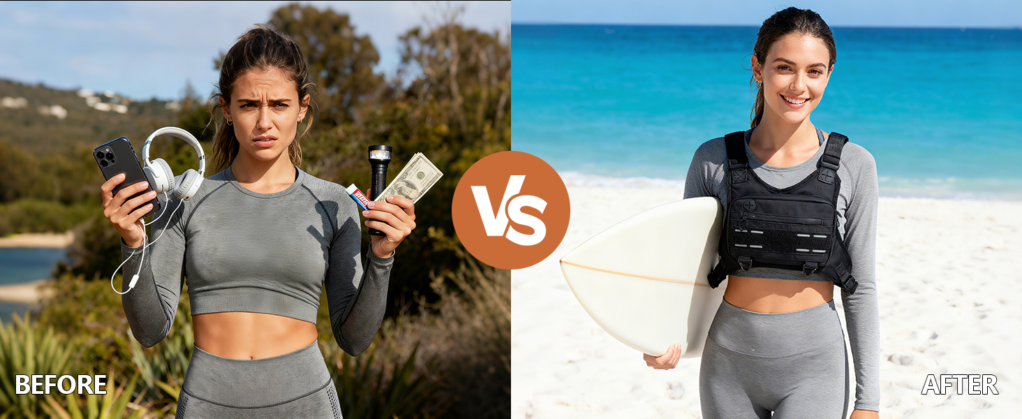【Perfect Size】: This running chest pack measures 10.24x14.96x1.97 inches. The size is perfect to hold all your daily items like wallet phone power bank earphone wet napkin hand sanitizer. The running chest bag can be used by different sizes men and women