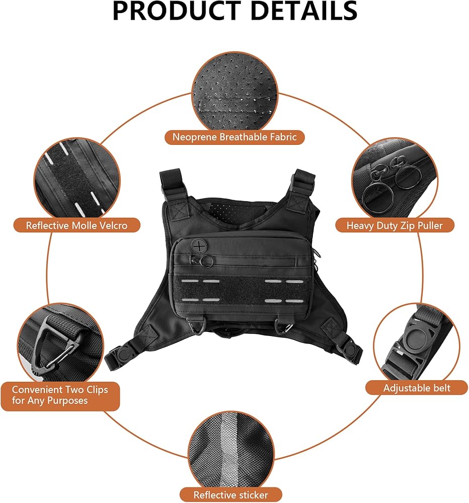 【Adjustable Strap】s: This outdoor chest bag has adjustable shoulder straps. All 4 straps are adjustable, so this backpack can be worn comfortably by almost any body type, whether a strong man or a plump woman