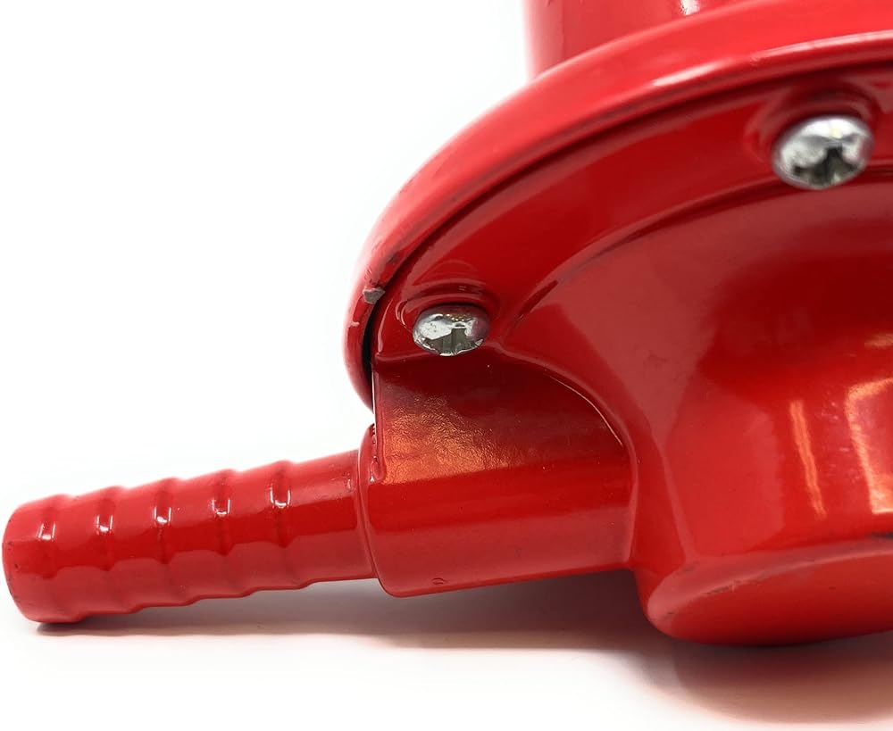 Specifications: 0-40 PSI Adjustable Max Inlet Pressure Inlet Connection: POL - Outlet Connection: Barb Gauge Port: 1/4” FNPT 3/8” Hose Exterior Finish: Red Wet Coat Diaphragm