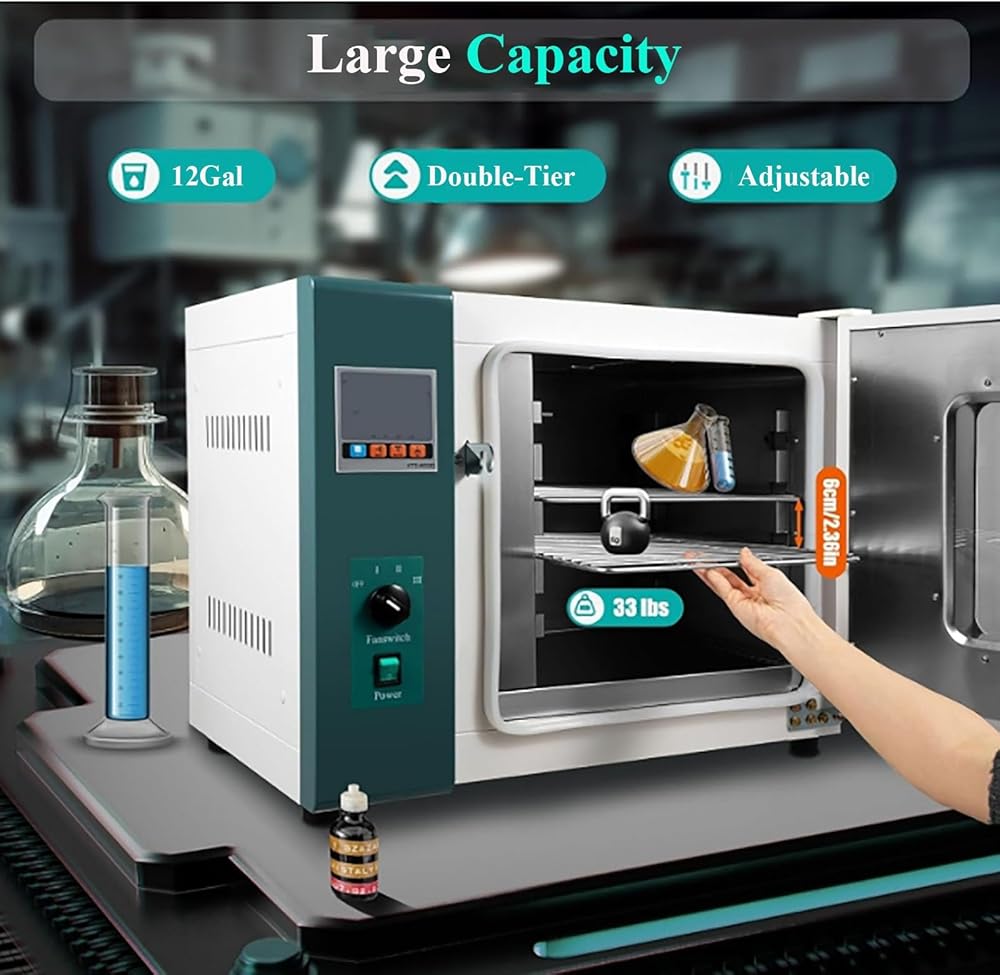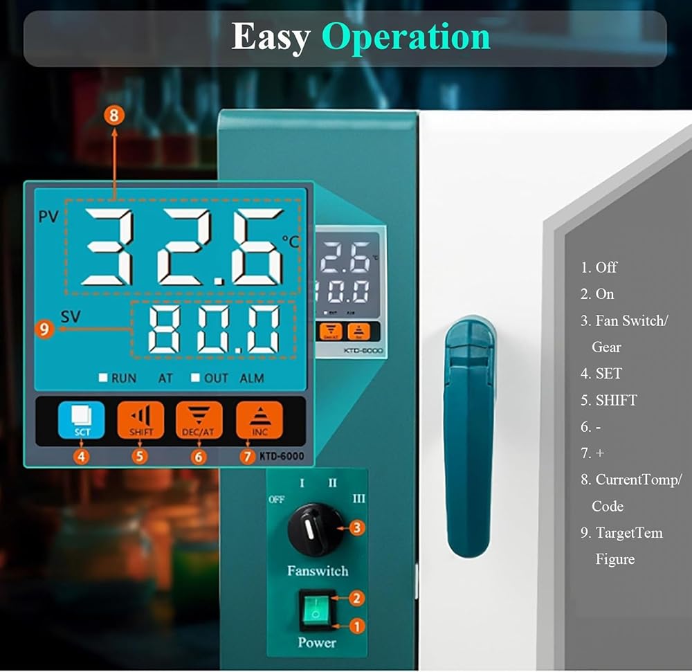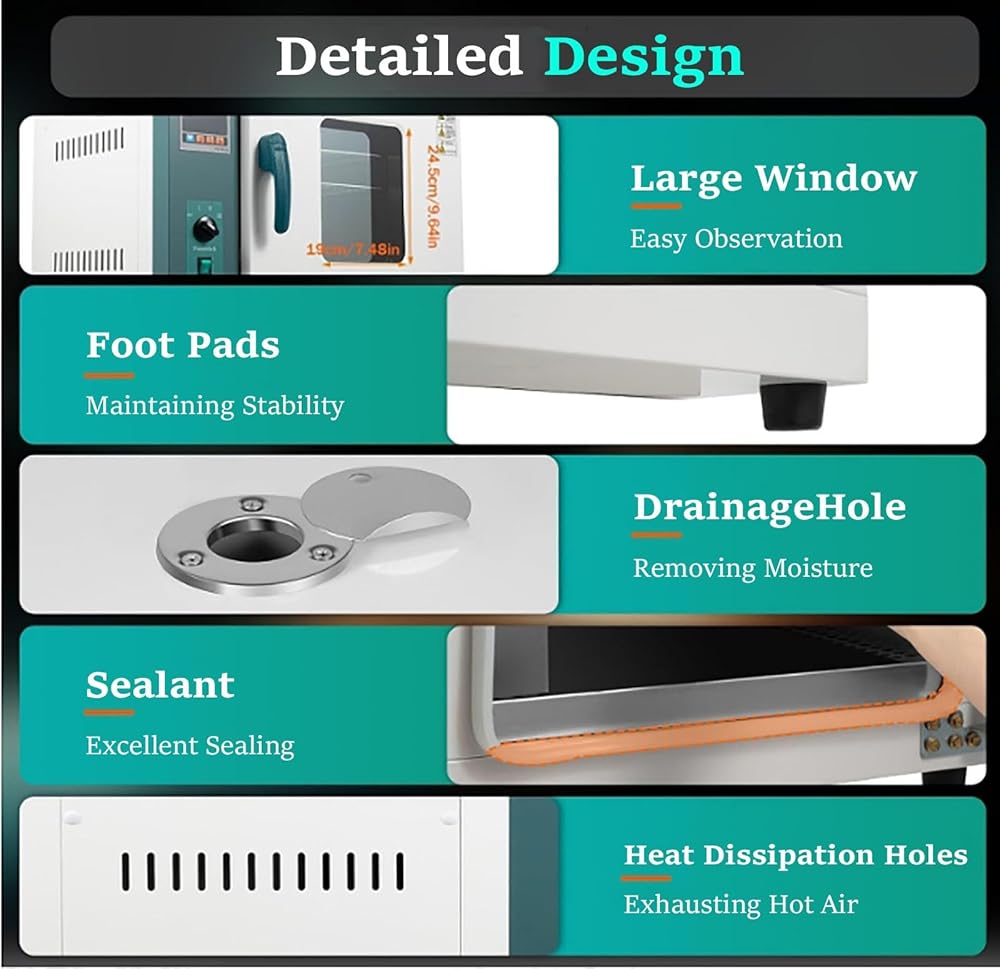 Elevate your laboratory experience with our innovative Convection Oven, designed for precision drying, baking, wax melting, and heat treatment across various settings including industrial labs, research institutions, and healthcare facilities. **Key Features:** - **Enhanced Observation Window:** The large double-layer tempered glass window allows for easy monitoring of your materials' progress without interrupting the process. - **Durable Silicone Sealant Strip:** Our advanced synthetic silicone sealant not only enhances the aesthetic appeal but also ensures high-temperature resilience, maintaining performance over time. - **Sturdy Anti-slip Feet:** Equipped with anti-slip feet, this convection oven guarantees stability, protecting both the unit and your work surface from scratches. - **Efficient Moisture Drainage:** The strategically placed moisture drainage hole ensures quick expulsion of humidity, preserving optimal drying efficiency. **Versatile Applications:** This convection oven is ideal for a wide range of applications in laboratories, from drying delicate samples to conducting heat treatments, making it a valuable asset for professionals in various fields. **Specifications:** - Model: 101-0AB - Material: Cold Plate, Stainless Steel - Control Type: Button Control - Power: 1000W - Voltage: 110V - Capacity: 45L/12Gal - Temperature Range: RT+10°C to 300°C/RT+18°F to 572°F - Maximum Tray Load: 15kg/33lbs **Package Includes:** - 1x Convection Oven - 1x English Manual **Safety Notes:** To ensure safe operation, please connect an external grounding device and use a compatible power supply with a leakage protection device. Avoid using the oven with flammable or corrosive substances. Always keep the unit on a dry surface and maintain a distance of at least 50cm from walls. For optimal performance, follow the operational guidelines and ensure the equipment is powered off when not in use. Upgrade your laboratory's capabilities with our Convectio...