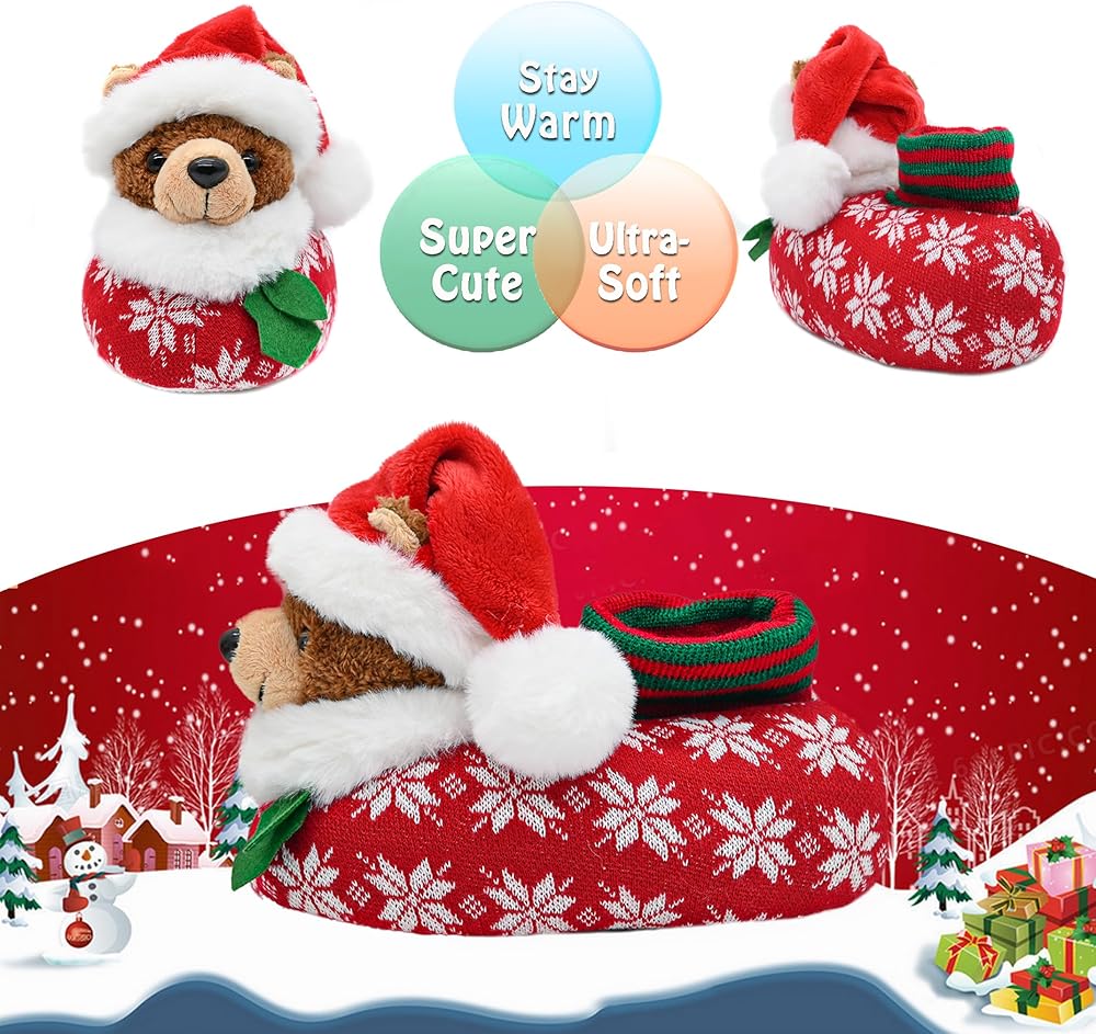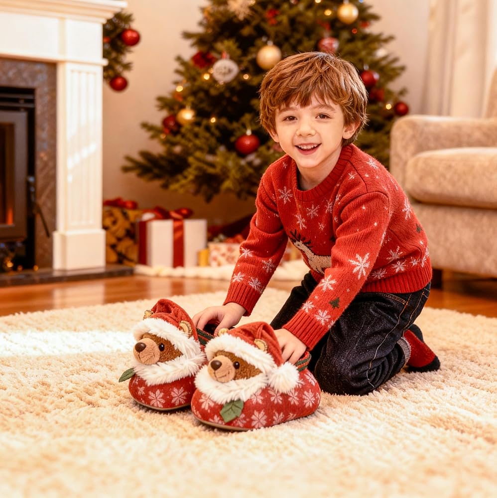- Upper: polyester plush upper with a lovely Christmas deer deisgn