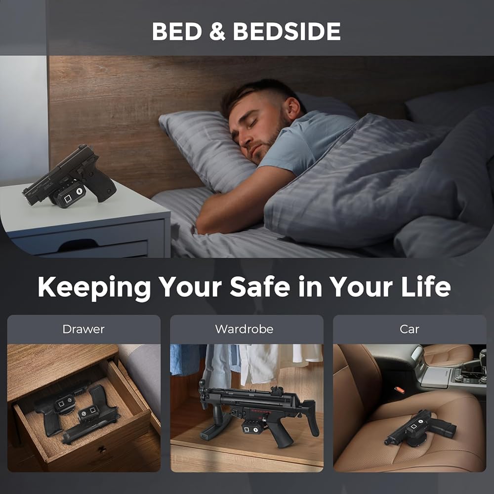- Durable alloy lock, fits most firearms