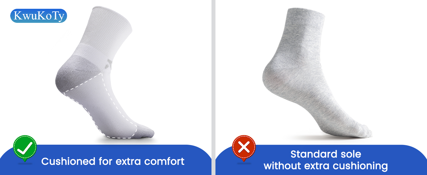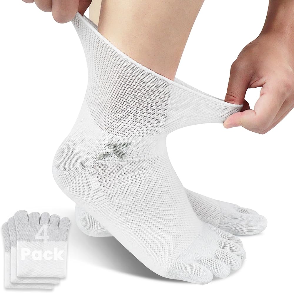 Diabetic Toe Socks Cushioned Sole, Combed Cotton, Daily Wear & Sports, 4-Pack Quarter Men's 6-12 Women's 7-13