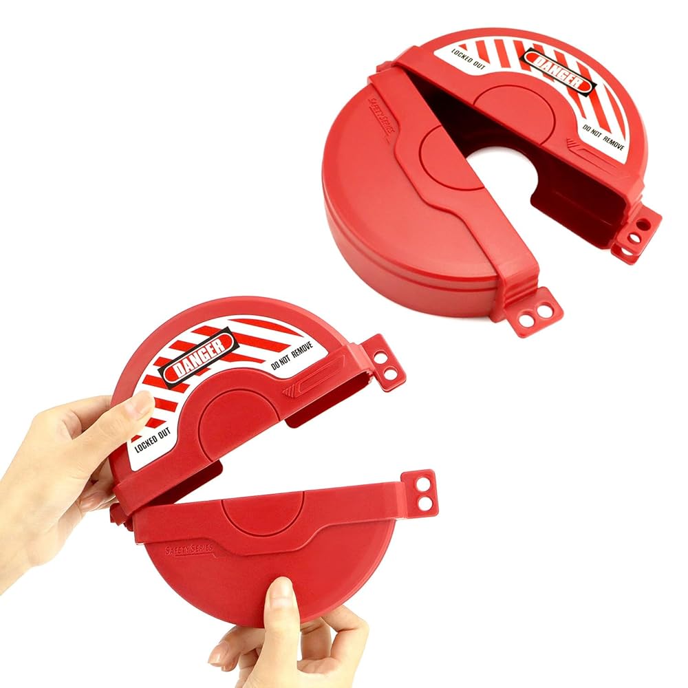 QWORK Gate Valve Lockout, 2.25-5 Inch Valve Compatibility, Valve Lockout Device for Water Spigot Faucet Knob, Red