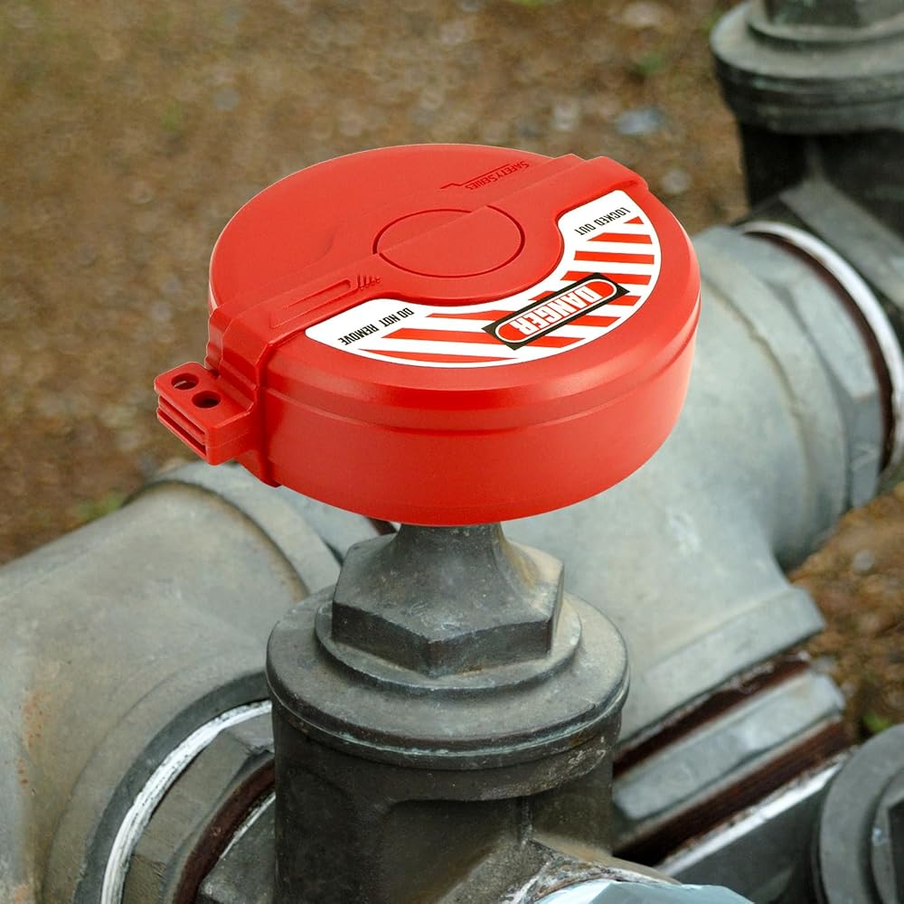 - Function: Hollow circular gate valve lockout designed to surround gate valve handle and work with padlocks to prevent valve use.