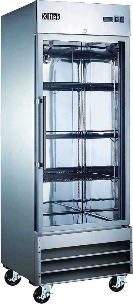 Elevate your commercial storage capabilities with this professional-grade 29-inch reach-in refrigerator. Featuring a sleek combination of stainless steel construction and glass door design, this commercial cooler offers a generous 23 cubic feet of storage space. The transparent glass door allows for easy visibility of contents while maintaining optimal temperature control. Perfect for restaurants, cafes, or any commercial food service establishment, this refrigerator combines functionality with durability. The stainless steel finish ensures easy cleaning and maintenance while providing a modern, professional appearance.