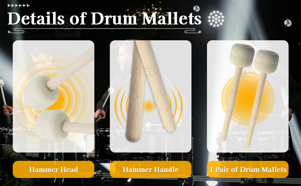 Versatile Use: Perfectly suited for bass drums, marching bands, and various percussion instruments, making these mallets a must-have accessory for any musician.