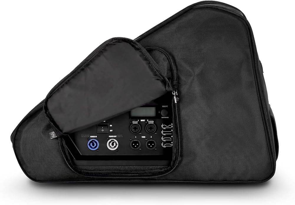 With the padded protective cover made of durable and water-repellent 1680D nylon, the MON 12 A G3 monitor is optimally protected against weather influences and other impacts. The 8 mm thickly padded protective cover can be easily slipped over the monitor standing on its side due to the large side zipper opening. The crossing of the internal Velcro straps ensures a secure fit in the protective cover. The large roll-up front opening and side flaps allow full use of the monitor with the protective cover in place. The cutouts for handles, control panel, connections, speaker stand flange, and heat sink each have their own flap. These flaps are closed with a zipper and can be kept open using Velcro to optimally protect the monitor while still allowing it to be operated.
