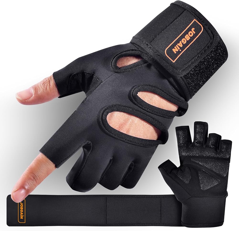 STRONG WRIST SUPPORT: The wrist brace wraps provides support to wrist to withstand heavy weights and lower the risk of wrist injuries. JOBGAIN fitness gloves support for performing weight training requiring wrist protection.