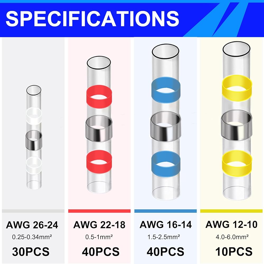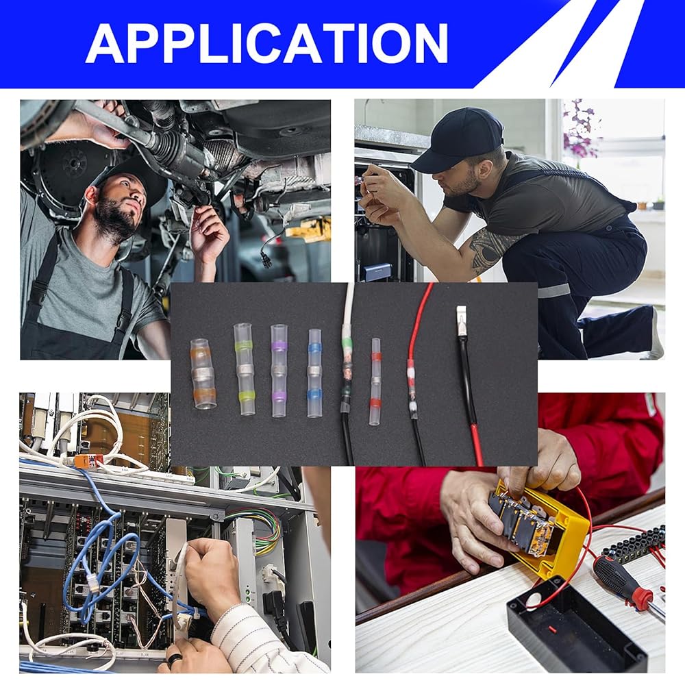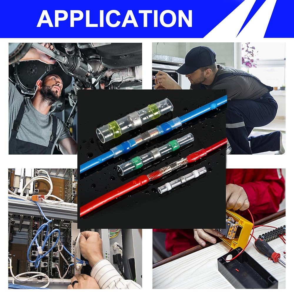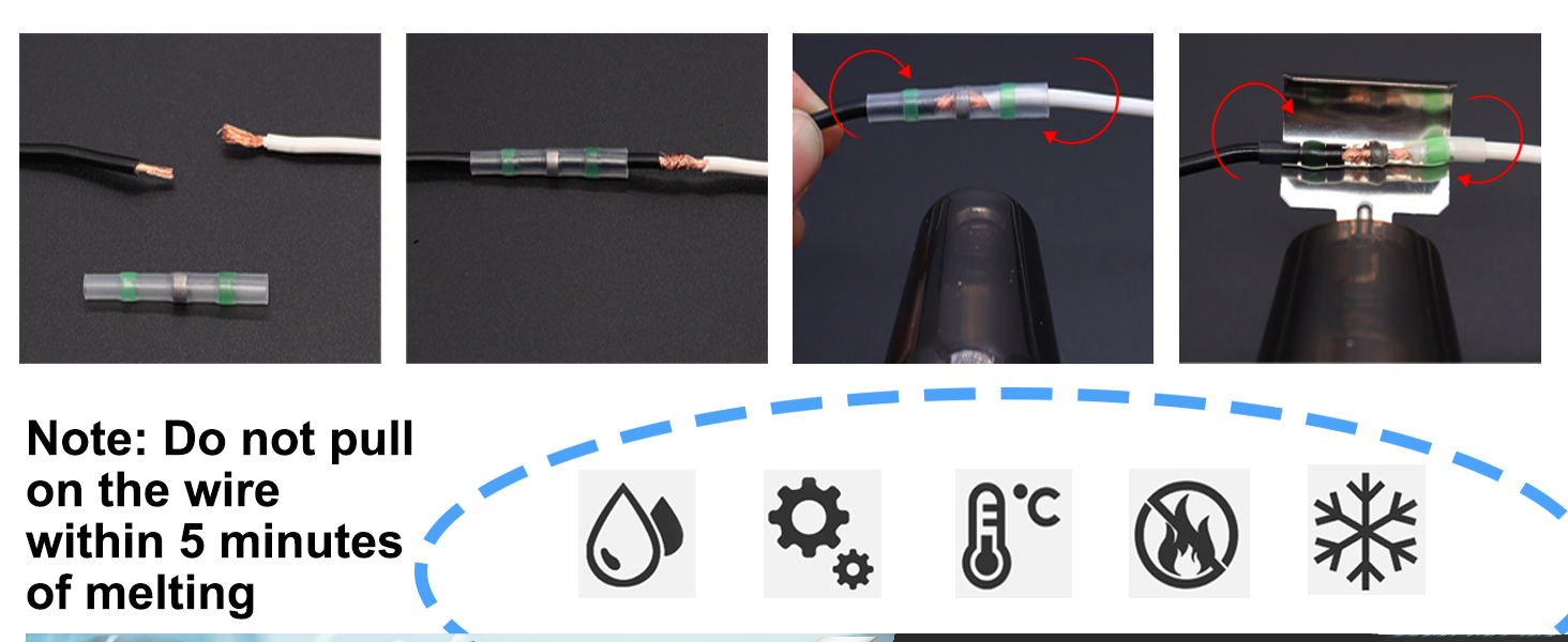 Easy to Use: No soldering or crimping required. Simply strip the wire, insert it into the solder sleeve connector, and heat with a heat gun. The low-temperature solder and hot-melt adhesive create a secure, waterproof splice in seconds