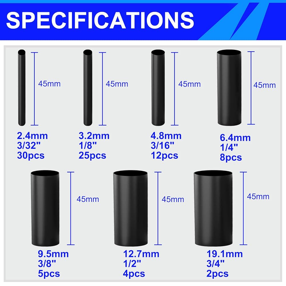 Multiple Sizes & Colors: The Tanbupu Heat Shrink Splice Connector Kit includes assorted sizes (3/8", 5/16", 1/4", etc.) and color-coded sleeves, paired with black heat shrink tubing for versatile wiring solutions. Flexible design adapts to tight spaces in engine bays or marine panels