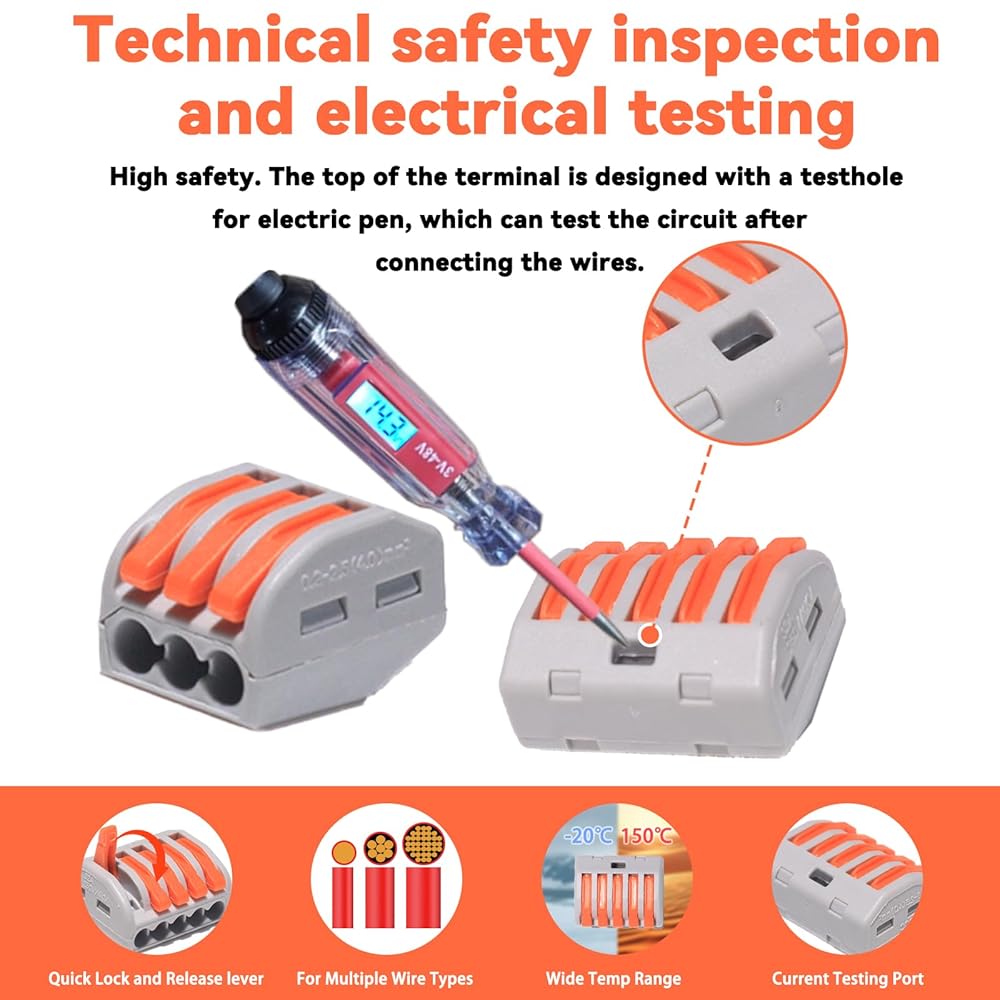 Superior Safety & Reliability : Featuring an insulated and flame-retardant housing, LordandLand wire splice connectors have independent copper springs that resist high voltage, aging, and corrosion, ensuring safe and leak-free connections. These low voltage wire connectors have a 32A rating, providing a reliable safety margin.