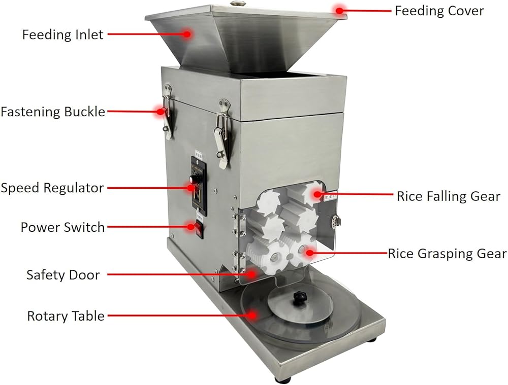 Detachable Structure: The rice hopper and feeding inlet come apart easily, so you can take them apart and clean them whenever needed. The inside of the hopper and the rice poking rods are made from food-safe materials, which keeps everything clean and helps the rice move through smoothly