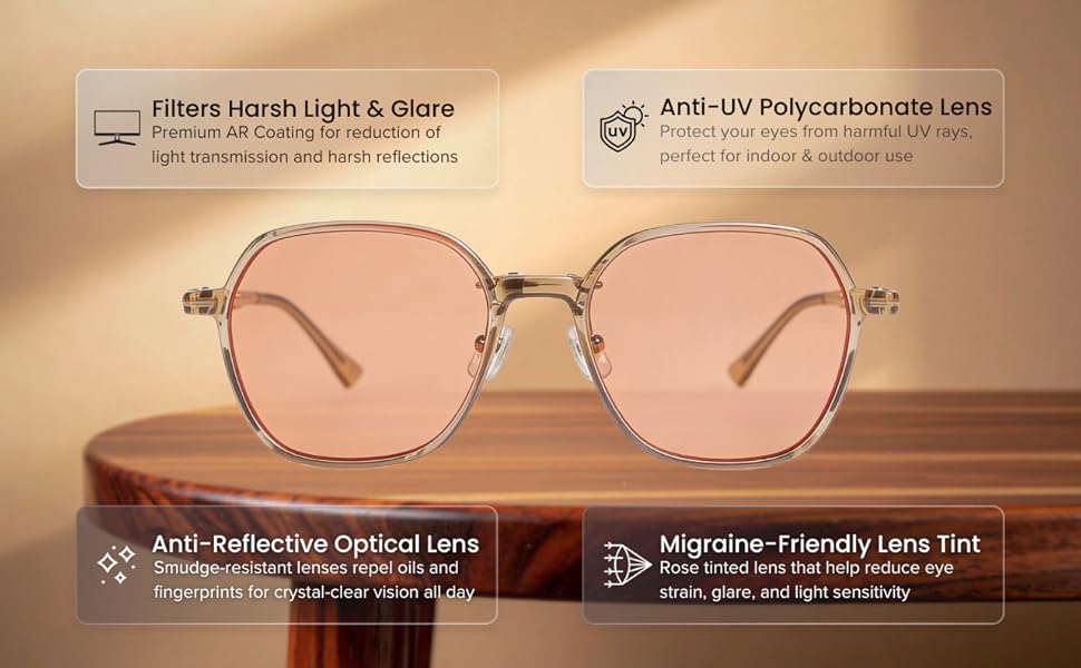 BRADDELL Women's FL-41 Rose Tinted Blue Light Glasses for Migraine Light Sensitivity, Fluorescent LED Glare, Photophobia