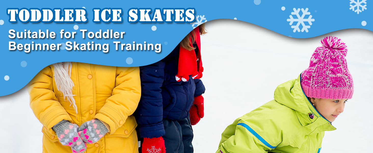 Flexible and Adjustable Size: The length of the toddler ice skates can be freely adjusted between 14.5 cm/5.7 to 19 cm/7.5 inches, adapting to the rapidly growing foot shapes of children aged 2 to 5. By rotating the adjustment screw on the sole, the length of the toddler ice skates can be easily changed, ensuring that the skates always fit the child's feet well and balancing safety and comfort.