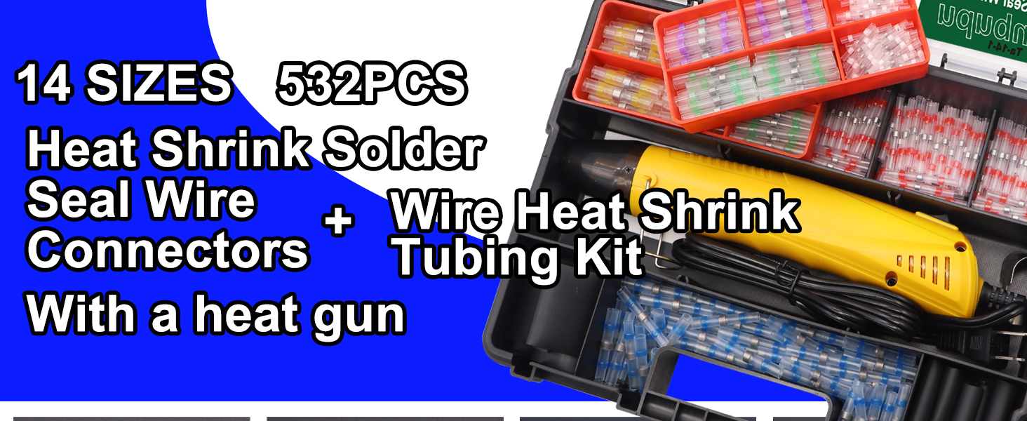 Outstanding features: including terminal and heat shrinkable sleeve, and a heat gun for wire connectors. The complete suite is suitable for all kinds of scenarios. High-quality hand-held boxes are easy to store and can be reused