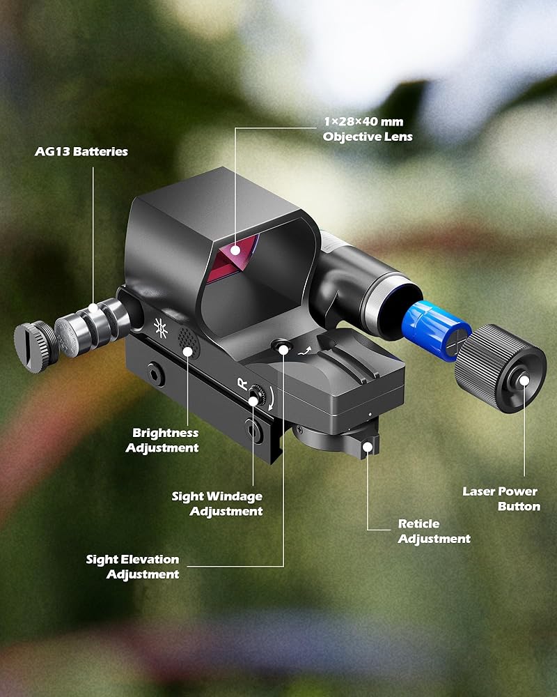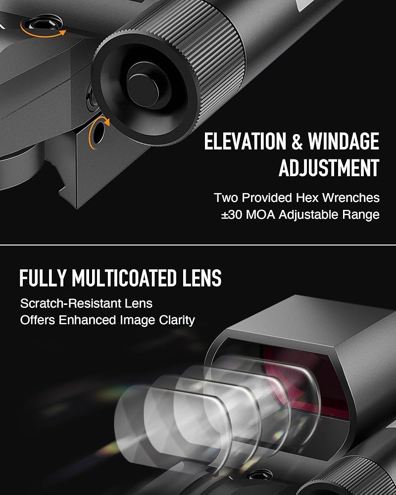 Precise Adjustments: Fine-tune your shooting precision by independently adjusting the windage and elevation of both the reflex sight and laser, with each click set at 1 MOA for meticulous and accurate target aiming