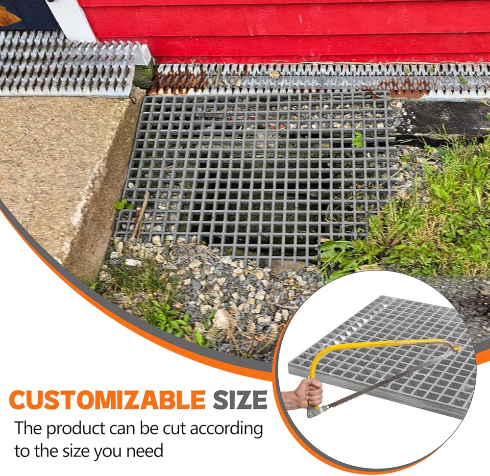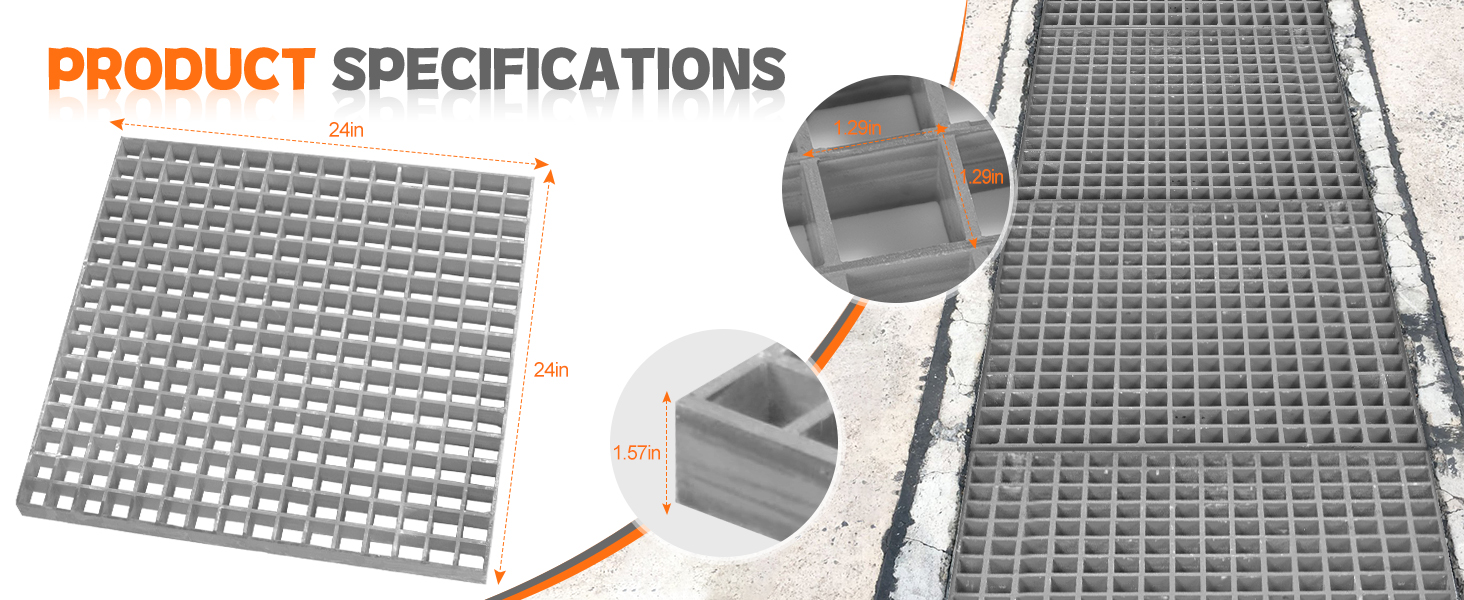 Heavy Duty 2'x2' Fiberglass Molded Grating Panel - 4400LBS Capacity, Industrial FRP Square Grate, 1.5''x1.5''x1.5'' Bar Grille for Car Wash, Decks, Stairs, Garage (Grey, 23.8" Lx23.8 W x 1.5" Th)