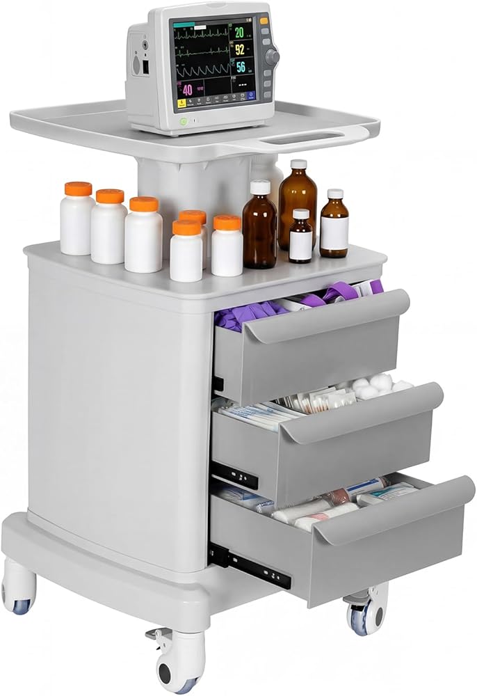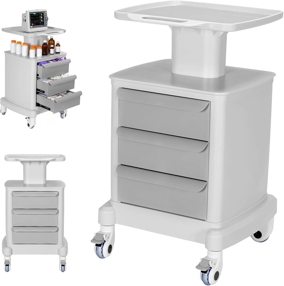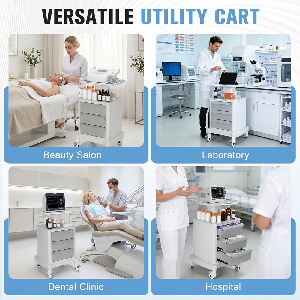 Medical Carts, Professional Mobile Medication Cart with 360 Lockable Wheels, Lab Utility Cart with 3 Drawers & 1 Top Tray for Lab Clinic Hospital Salon, Floor Standing Salon Roller Trolley