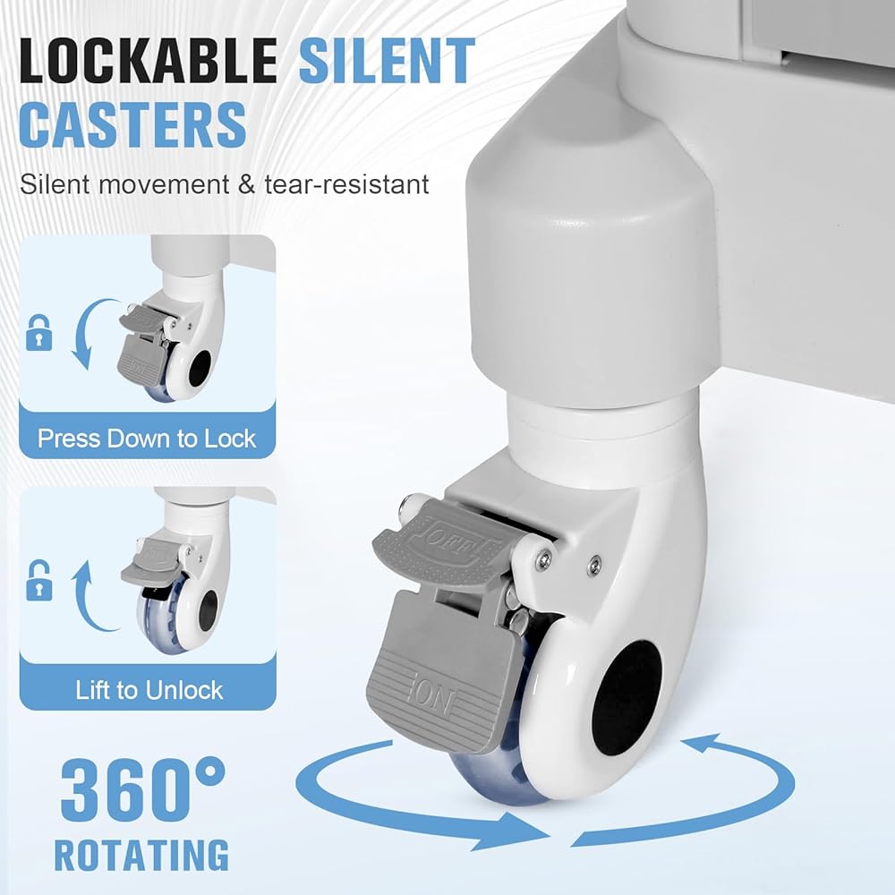 Silent Locking Casters Ensure Safer Movement in Clinics: The medical cart features lockable silent casters that rotate 360° freely, moving quietly in hospital wards and dental clinics. A simple press locks the cart in place, preventing slippage and ensuring safety and stability in treatment settings.