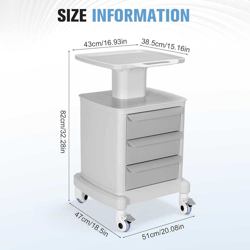 Superior Load-bearing Structure Ensures Stability in Medical Settings: The medical cart features a sturdy load-bearing column design, capable of supporting up to 66.14 lbs (30 kg). Even in hospital emergency rooms and dental treatment settings, it remains stable when holding equipment and consumables, preventing the risk of tipping over.