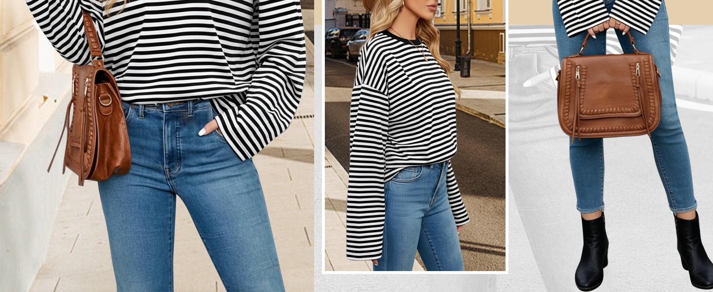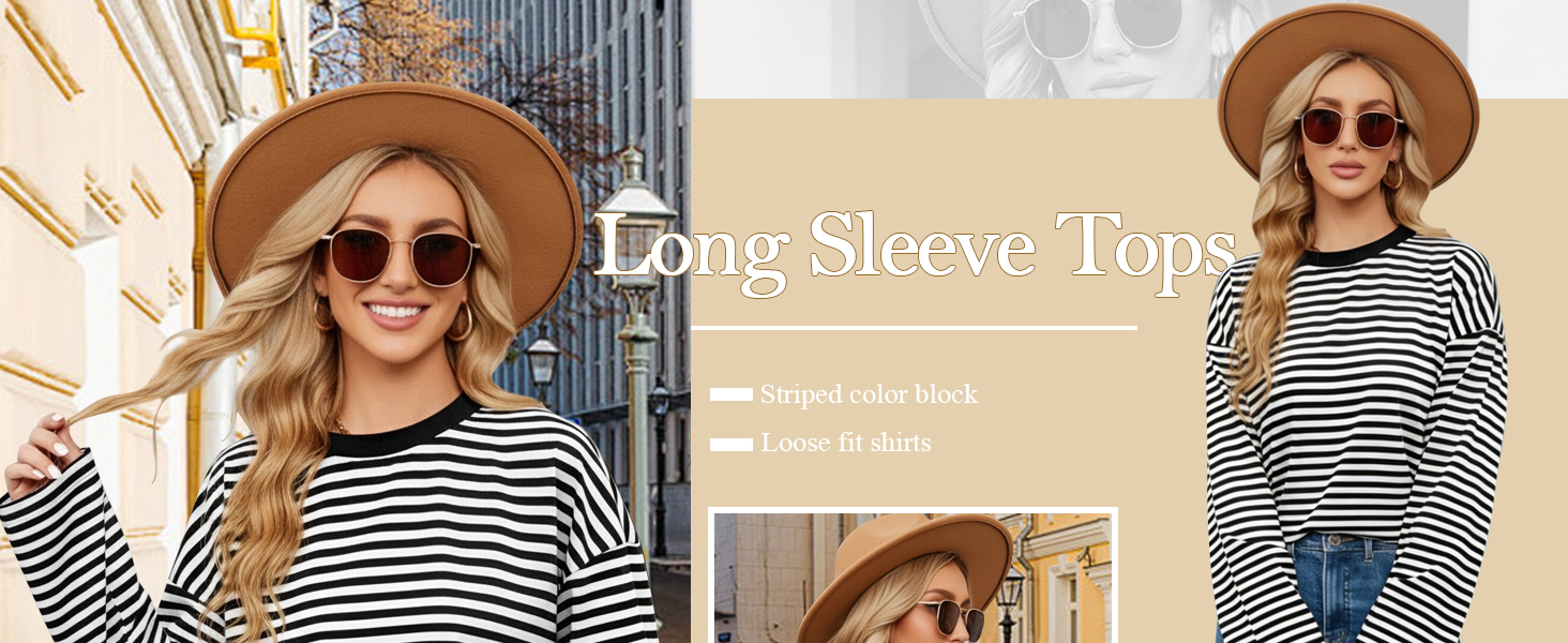 Material: This striped long-sleeve tshirt is soft and skin-friendly.It's breathable yet non-see-through,comfortable for casual wear and trendy for outings—ideal for spring,autumn,and winter.