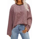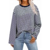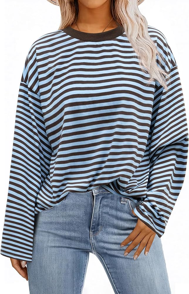 Style: Crewneck tshirts for women/Striped tshirts for women/Color-block striped women's tshirt/Women's long-sleeve tshirts/Oversized crewneck tshirt for women/Trendy tshirts for women/Crewneck tunic tshirts for leggings/Women's loose-fit tshirts/Womens tunic tops/Basic tshirts for women/Long-sleeve fall tshirts for women