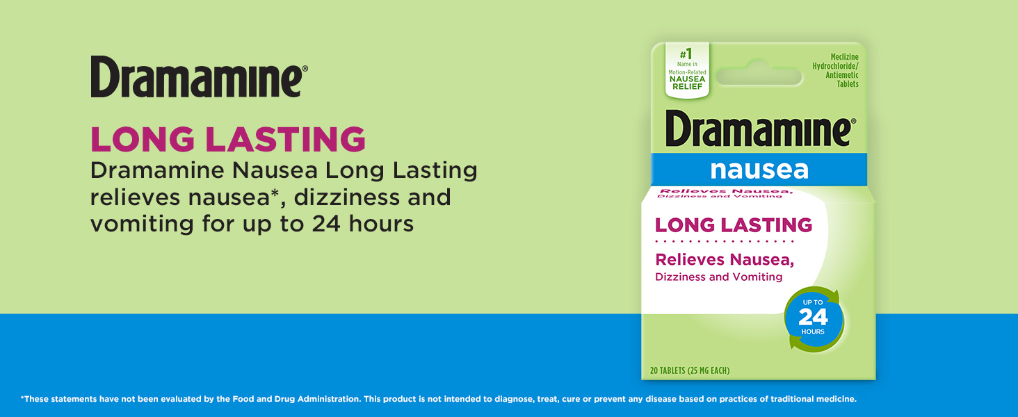 Long-lasting nausea relief: Dramamine Nausea Chewable provides fast relief* from nausea and vomiting for up to 24 hours