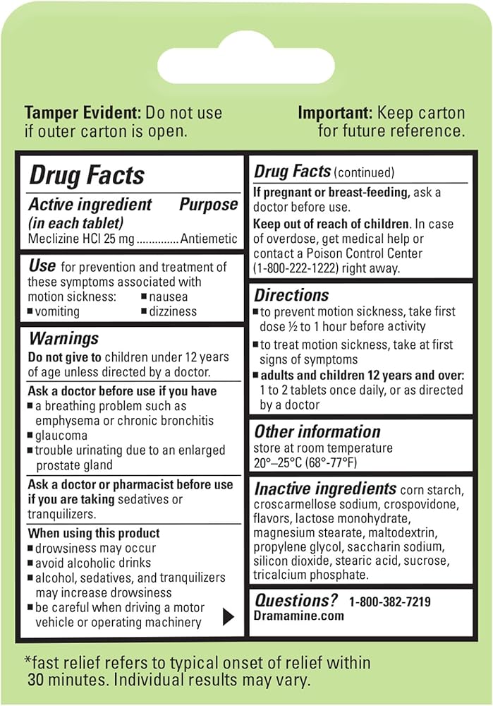 Trusted brand: Dramamine is the #1 brand in motion-related nausea relief (per IRI data collected 7/14/24–7/13/25)