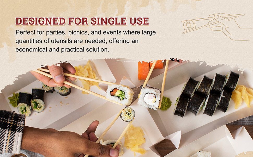 Eco-Friendly Choice – A sustainable alternative to plastic or low-quality wood chopsticks, these disposable bamboo chopsticks are biodegradable and safe for the environment.