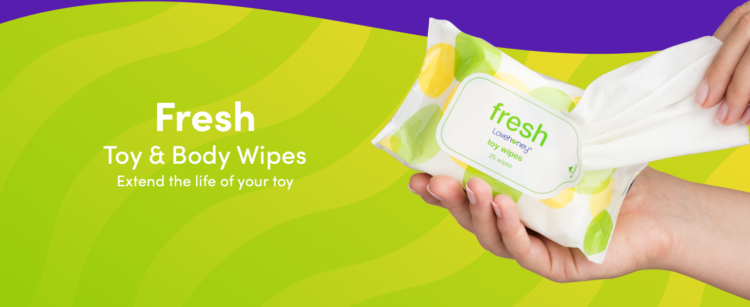 - Pack of 25 cleansing wipes for both body and toys.
