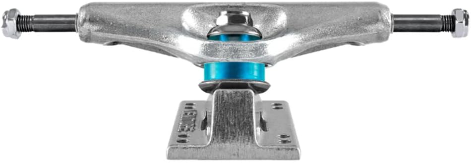 - Polished hanger and cast V8 polished baseplate with clear light blue 90A bushings.