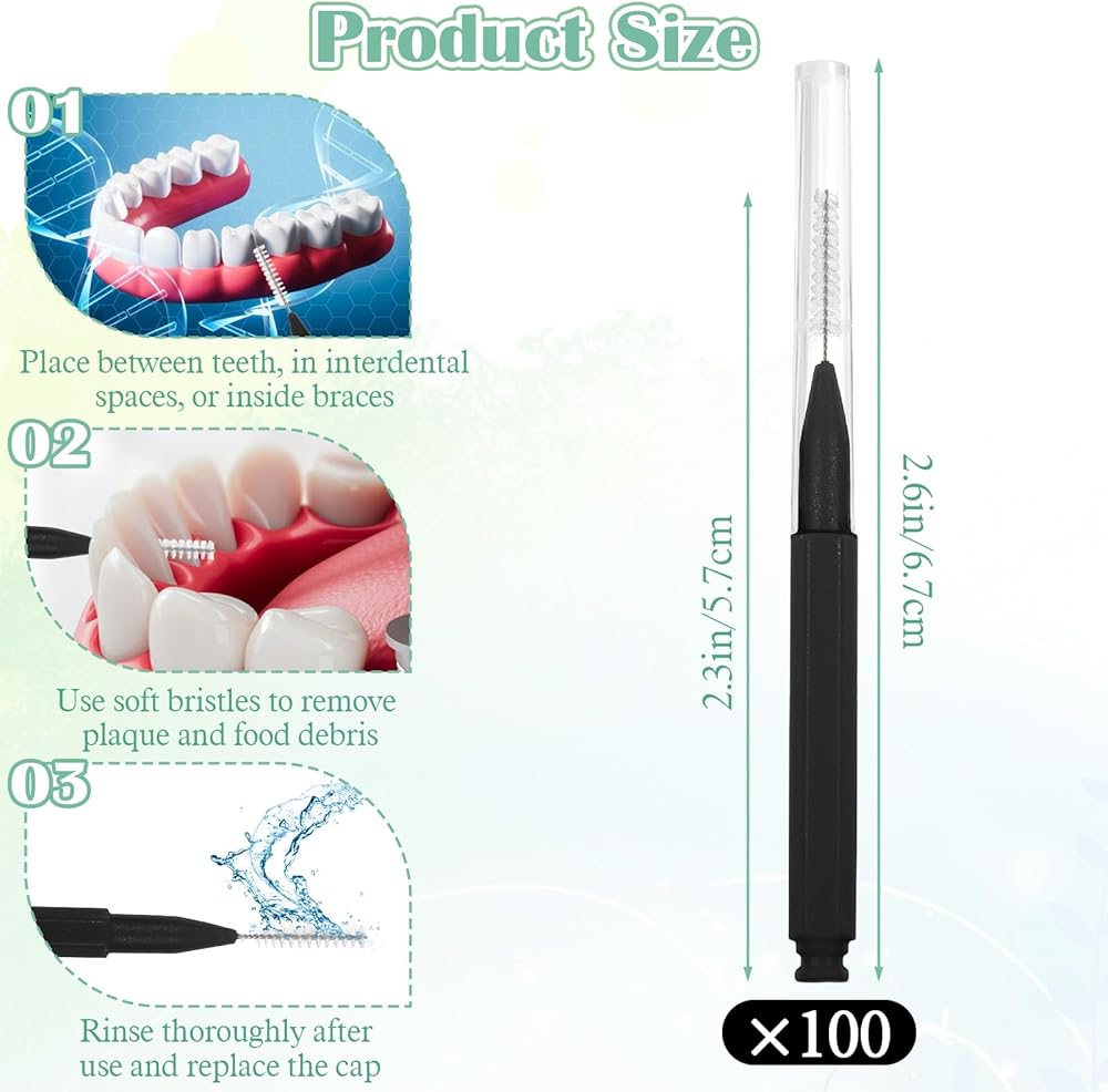 • Package List: You will receive 100 black interdental brushes. This generous quantity perfectly meets your interdental cleaning needs, making it ideal for daily oral care, as a refill pack, or to share with family and friends
