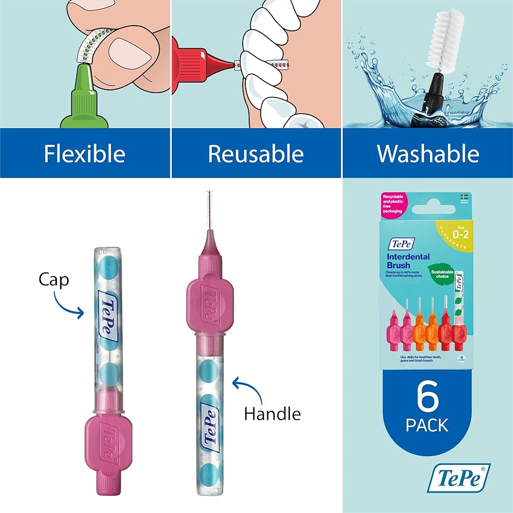 • EFFICIENT DENTAL BRUSH: Unlike regular dental-floss tools, this reusable brush cleans the entire space between your teeth. It has an ergonomic handle for total movement control and an included cap that protects the brush when it's not in use.
