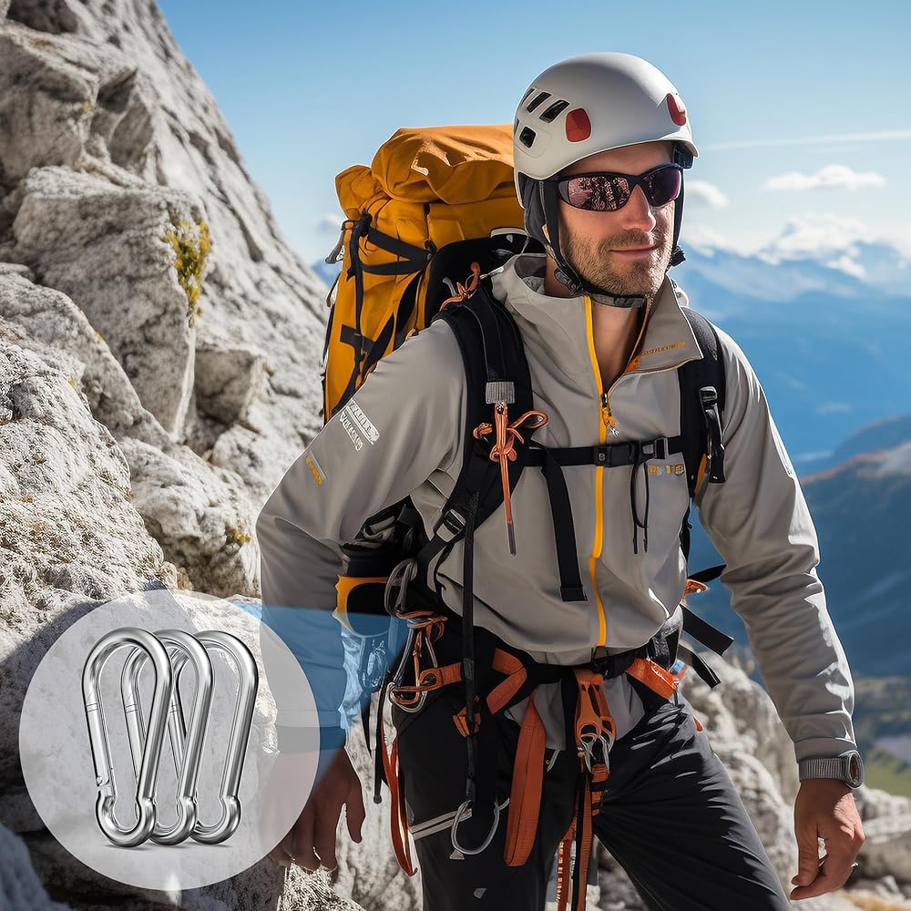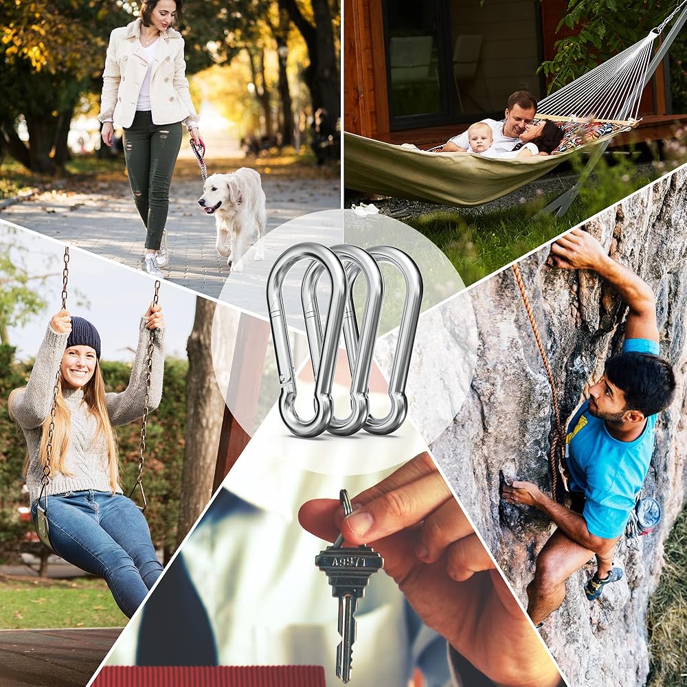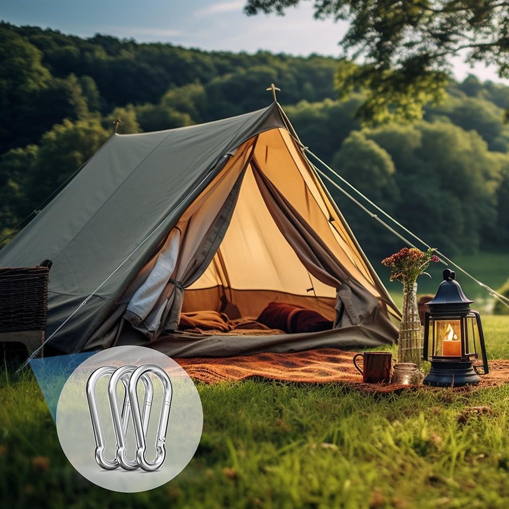 Robust Steel Carabiner Clips: Constructed from durable galvanized steel, these clips boast a lustrous finish, excellent wear and rust resistance, ensuring they can be used for a long time even in extreme conditions.