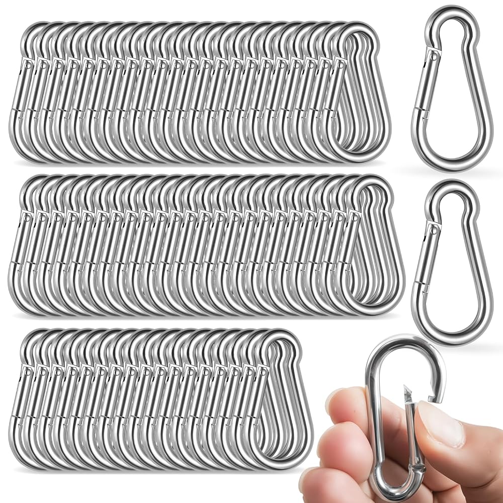 Value Pack: Package include 100 pack M5 small spring snap hooks; clips are 1.97in / 5cm L, 0.79 in / 2 cm W, 0.12 in / 0.3 cm thick, 0.43 in / 1.1 cm max opening, weight 0.49oz / 14g