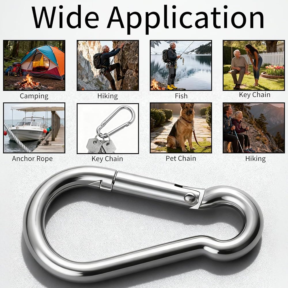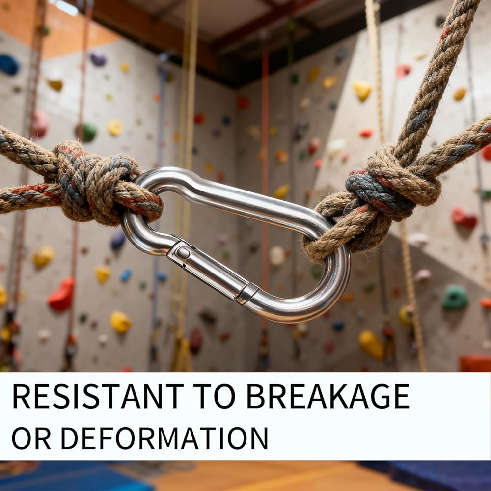High Load Capacity: These M5 spring snap hook support working loads up to 176 lbs (80kg) with a breaking strength of 352 lbs (160kg); reinforced design maintains structural integrity to prevent rope slippage and accidental disengagement during use