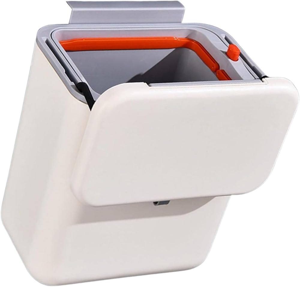 The Hanging Trash Can with Lid is for convenience and featuring a unique drawstring designing that allows for quick and trash disposal, essential addition to any kitchen or bathroom.