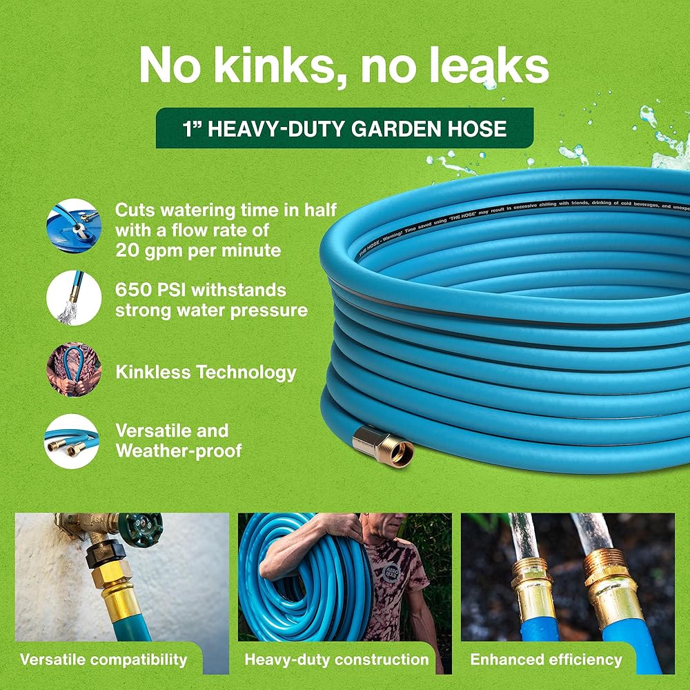 Aeromixer THE HOSE - 1 Inch Garden Hose 100 Ft, Includes Adapters 3/4 Spigots, Kinkless Commercial Garden Hoses, Heavy Duty Water Hoses for Outdoors, 650 PSI High-Pressure Watering Tool