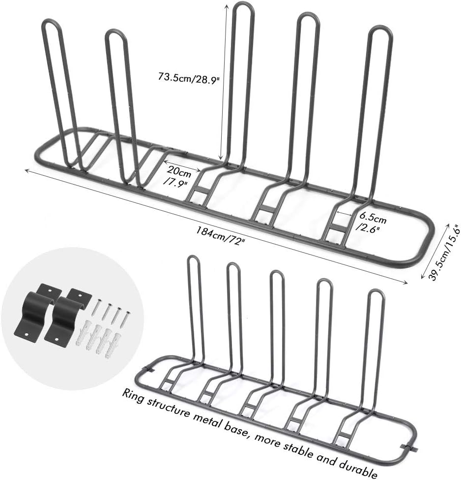 Easy Assemble: Stable floor parking rack for holding up to 5 bicycles.It is assembled by one piece of rack so you can free assemble to park 1-5 bikes to meet your exact need for bicycle storage.
