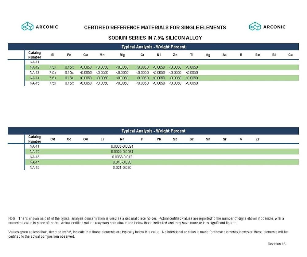 Aluminum Certified Reference Material for Single Element Sodium in 7.5% Silicon Alloy, NA-14