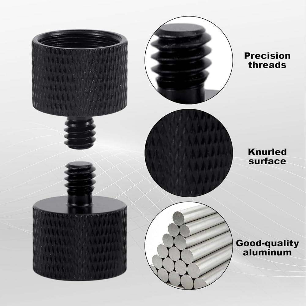Excellent Design: Our adapter features a deep-thread precision-cut process and a knurled non-slip surface, ensuring a secure, burr-free connection and preventing microphone wobbling, slippage, or accidental drops, ensuring your microphone, camera, or recording equipment is securely positioned.