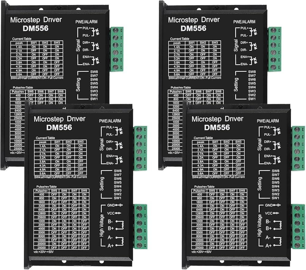 DM556 CNC Digital Stepper Driver - 2-Phase Stepper Motor Controller, 20-50V DC Max 5.6A, 128 Subdivision for Nema 23, 24 and Nema 34 Motors (4pcs)